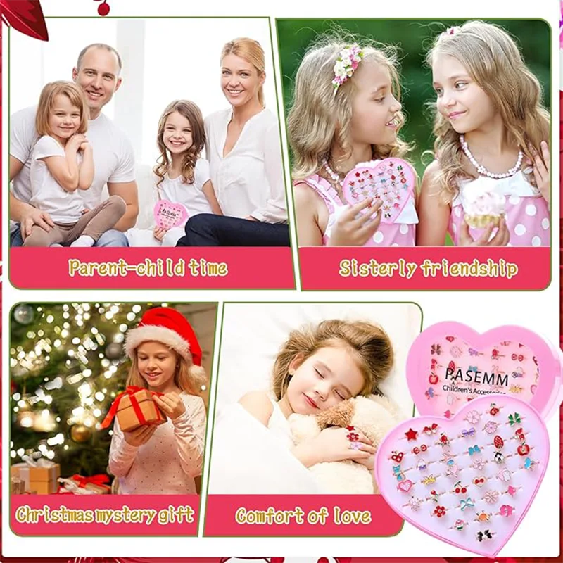 แหวนของสาวๆ เหล่านี้บรรจุอยู่ในกล่องรูปหัวใจสีชมพู แหวนเด็กบรรจุกล่องเป็นของขวัญคริสต์มาสและวันเกิดที่ดีที่สุดสำหรับเด็กผู้หญิงอายุ 4 ถึง 12 ปี บรรจุภัณฑ์ที่สวยงามเหมาะสำหรับงานวันเกิด ของใส่ของขวัญ ของใส่ถุงของขวัญ รางวัลในงานปาร์ตี้ กิจกรรมตามฤดูกาล เช่น วันฮาโลวีน วันวาเลนไทน์ อุปกรณ์ตกแต่งงานปาร์ตี้ และอุปกรณ์ปาร์ตี้ของเด็กผู้หญิง คอลเลกชันแหวนเครื่องประดับสำหรับเด็กผู้หญิงชุดนี้เป็นของขวัญคริสต์มาสและวันเกิดที่น่ารักและสมบูรณ์แบบสำหรับเด็กผู้หญิงอายุ 4 ถึง 12 ปี