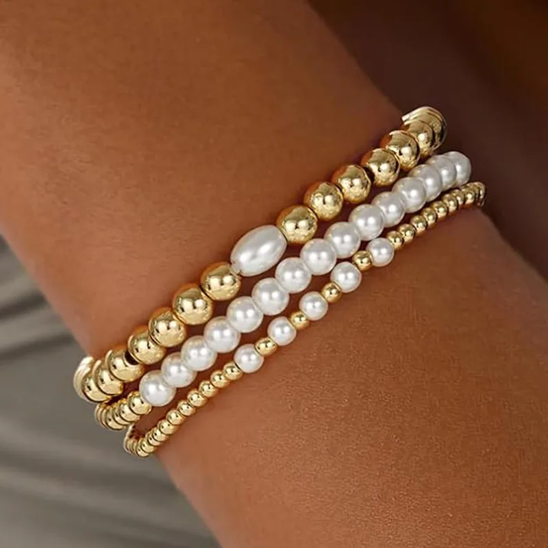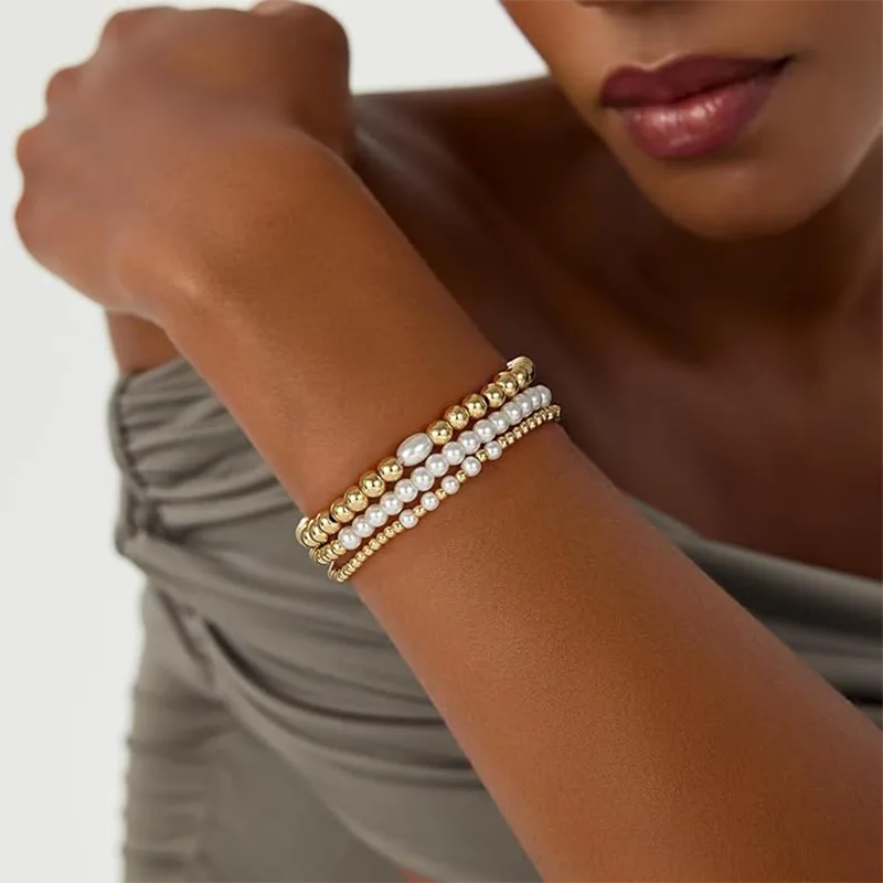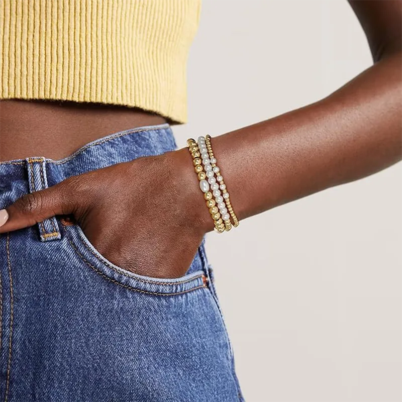 วิธีการสวมใส่: สร้อยข้อมือลูกปัดมุกผู้หญิงประกอบด้วยกำไลทองแฟชั่น 3 เส้น สร้อยข้อมือทองคำแต่ละเส้นสามารถสวมใส่เดี่ยวๆ เป็นคู่ หรือใช้ร่วมกับสร้อยข้อมืออื่นๆ ได้ วิธีการสวมใส่ที่หลากหลายสามารถปรับให้เข้ากับสไตล์การแต่งตัวของคุณได้