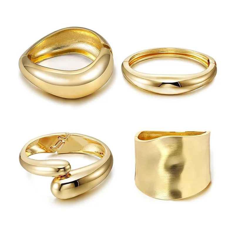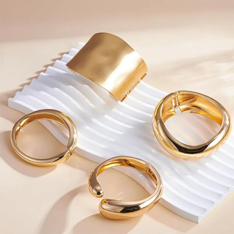 สร้อยข้อมือโลหะผสมสำหรับผู้หญิง Daily มาในสี่สไตล์ที่เรียบง่ายและทนทาน: สร้อยข้อมือรูปทรงหยดน้ำสีทองที่ทันสมัย กำไลข้อมือแบบกว้าง กำไลข้อมือที่ทนทาน และสร้อยข้อมือสีทองแบบผิดปกติ ล้วนมีให้เลือกสนองความต้องการที่หลากหลายของคุณอย่างเต็มที่