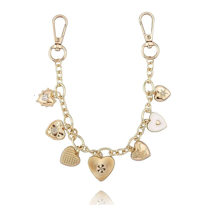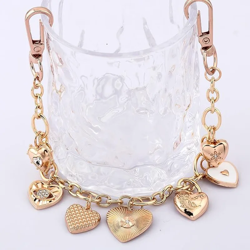 เสน่ห์กระเป๋าถือโลหะผสมสังกะสีใช้การออกแบบที่เป็นนวัตกรรมใหม่ จี้รูปหัวใจทั้ง 7 ชิ้นแต่ละชิ้นมีดีไซน์อันชาญฉลาดและจับคู่กับโซ่โลหะ สไตล์โดยรวมดูทันสมัยและน่ารัก ไม่ว่าจะเป็นทองคำที่สะดุดตาหรือเงินที่วิจิตรงดงามล้วนมีคุณลักษณะในการดึงดูดความสนใจได้ด้วยตัวเอง การแขวนไว้บนกระเป๋าช่วยเพิ่มสไตล์ให้กับเครื่องประดับได้ทันที ทำให้กระเป๋าและกระเป๋าถือใบเล็กธรรมดาๆ เน้นดีไซน์มากขึ้น และช่วยให้คุณโดดเด่นได้ง่ายเมื่อออกไปข้างนอก